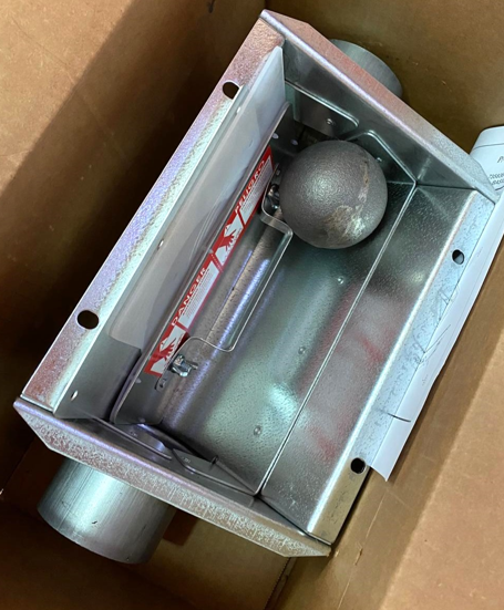 Cajetín con salida simple, diseñado para permitir la conexión de tubos de Ø75 mm entre silos y completar el montaje del sistema transportador de pienso. Su diseño facilita una instalación segura y eficiente, garantizando el flujo continuo del alimento hacia la línea de distribución.