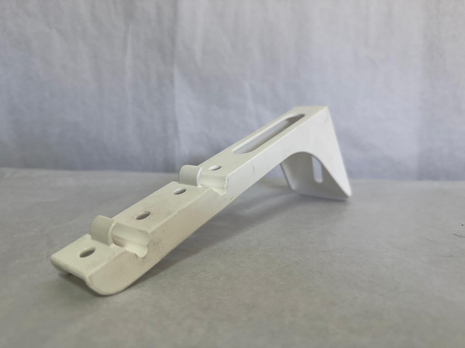 Escuadra de brumización especialmente diseñada para sujetar las barras de boquillas nebulizadoras en sistemas de enfriamiento instalados en granjas avícolas.